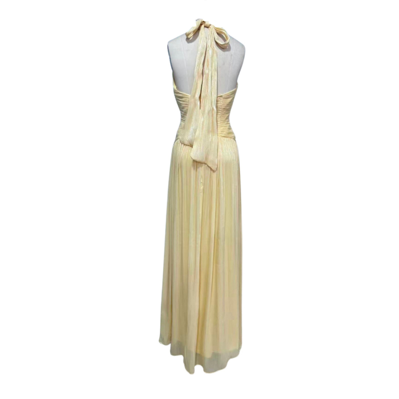 Op zoek naar een bruiloft gast jurk of een jurk voor een andere gelegenheid met het thema summer chique dan is deze zacht gele jurk perfect. De jurk heeft een v-hals; een split en een lage rug en is gemaakt van een luchtige stof. Ons model is 168cm en draagt maat 34. Zit je tussen 2 maten in dan adviseren we de kleinere maat te bestellen, de jurk valt ruim. Mooi te combineren met hakken maar ook met platte slippertjes is deze gele jurk prachtig.